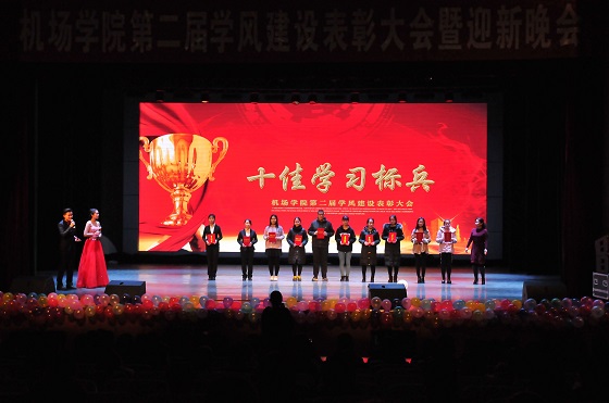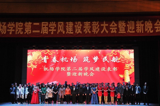 12月24日晚,欧冠官方网站入口“青春机场,筑梦民航”第二届学风建设表彰大会暨迎新晚会在我校学苑会堂隆重举办。学院党总支书记董克勇老师、学生工作处副处长代林老师、校团委副书记于峰老师、学院副院长韩春燕老师、院长助理柳明老师等应邀出席晚会,并为获奖代表颁奖。欧冠官方网站入口全体师生以及来自全校各院系的受邀师生代表八百余人参加了晚会。