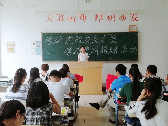 活动伊始,党总支书记董克勇老师首先介绍欧冠官网2018届学生考研成绩,为正在备战考研的同学们加油鼓劲儿。李华老师依次介绍5名优秀毕业生代表的考试成绩、录取学校等基本信息,希望同学们珍惜此次学习机会,积极交流。5名优秀毕业生结合自己的备考经历,分别从报考院校及专业选择、考试科目准备、考前心理调整、学习方法等方面进行了分享交流。他们简洁而诚恳的言辞、用心而细致的分享,赢得了在场学生们的阵阵掌声。在捐赠图书环节,学长们将自己的考研复习资料赠予学弟学妹们,为以后备战考研的同学们提供了丰富的资料。同时,它也象征着一份知识与温情的传递,资料有限,但是知识无限,情谊无限。这一本本学长们为之付出努力的书籍,镌刻着他们奋斗的印记,也寄托着他们对学弟学妹们殷切的希望。在互动交流中,在场的同学们根据自身学习情况纷纷提出疑惑,学长们耐心的一一给与解答,并强调应以一颗平常心对待考研,合理调整自己的心态,最大程度地发挥自身的潜能。