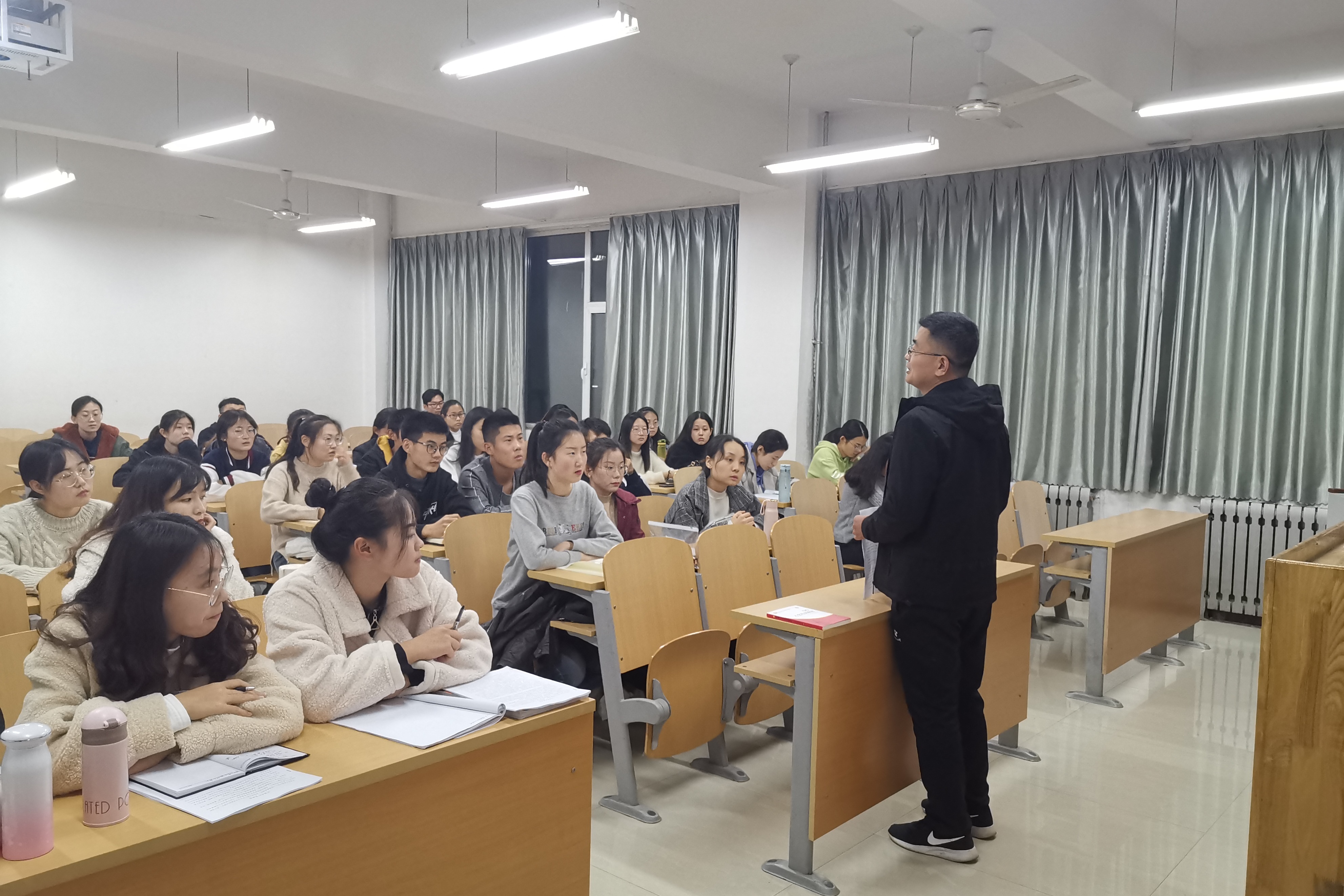 李华老师在开班仪式上作动员讲话。首先,李华老师指出此次参加入党积极分子培训的50名同学都是从各个班级表现比较出色的同学当中遴选出来的,从思想和行动上不断向党组织靠拢的同学,希望同学们能在此次积极分子培训中积极主动学习党的先进思想和理论知识,端正入党动机,明确入党初心,在学习、工作和学习中能够用一名党员的标准严格要求自己,充分发挥党员先锋模范带头作用。随后,王珊珊老师向同学们讲述了此次培训课程的形式、内容及要求,希望同学们在此次培训中要认真听讲,明确学习目的,并且要保证培训纪律,同学们也纷纷表示自己一定会端正态度,奋发向前,不仅要在形式上向党总支靠拢,更要在思想上向党总支靠拢。最后全体同学观看了“不忘初心、牢记使命”主题教育视频《榜样4》,并励志成为一名信念坚定、廉洁自律、敢于担当的合格党员。