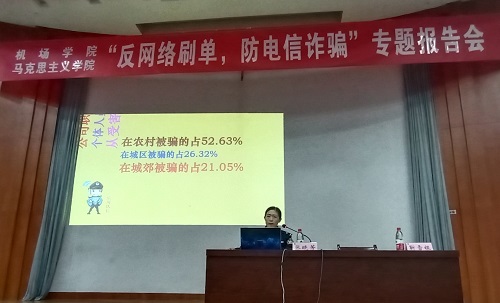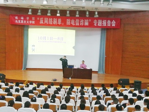 为增强学生法治观念和安全防范意识,避免财产遭受损失,有效维护学校的安全稳定, 10月11日晚,欧冠官方网站入口与马克思主义学院在滨州学院第二报告厅联合举办以“反网络刷单,防电信诈骗”为主题的专项教育宣讲活动,彭李派出所张晓芳警官主讲, 2020级全体新生到场参加。
