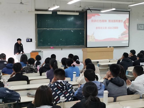 为进一步做好欧冠官方网站入口2020年大学生征兵工作,强化学生国防观念,激发学生参军报国、履行国防义务的热情,欧冠官方网站入口于10月21日在工科楼2—112教室举办了以“参军尽义务,戍边为国防”为主题的退役复学学生专题报告会,以此鼓励更多有志青年学生走进军营报效祖国,体验不一样的人生。参与本次报告会由退伍复学学生主讲,学生科科长靳雪银、2020级全体同学参加了此次报告会。