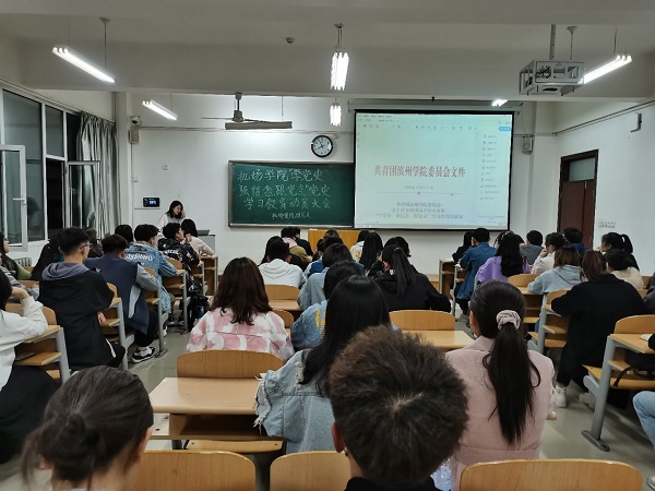 为响应滨州学院校团委有关党史学习教育号召,认真贯彻落实和开展相关教育工作。欧冠官方网站入口于3月28日在8教508教室,开展了“学党史、强信念、跟党走”党史学习教育动员大会。本次由欧冠官方网站入口学生团总支书记靳雪银同志主持,非毕业班全体团干部参加。