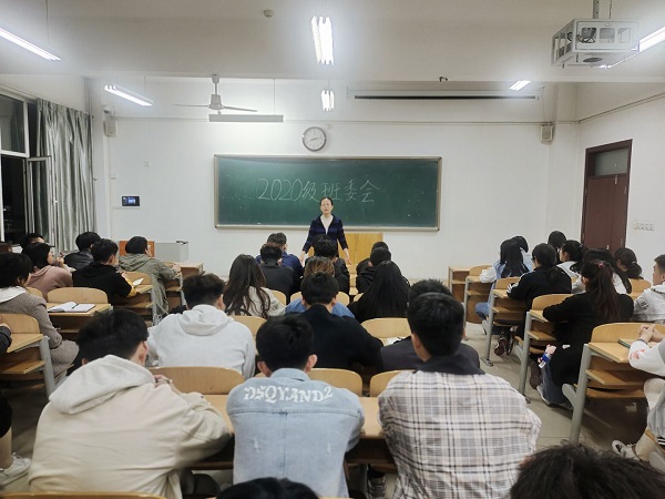 为进一步加强各专业班委队伍建设,提高工作效率,促进班委与同学、老师之间的沟通交流,总结前一阶段工作中取得的成绩和存在的问题。4月5日晚,欧冠官方网站入口于八教506教室召开2020级全体班委大会。会议由欧冠官方网站入口学生科科长靳雪银老师主持,2020级全体班级委员参加此次会议。