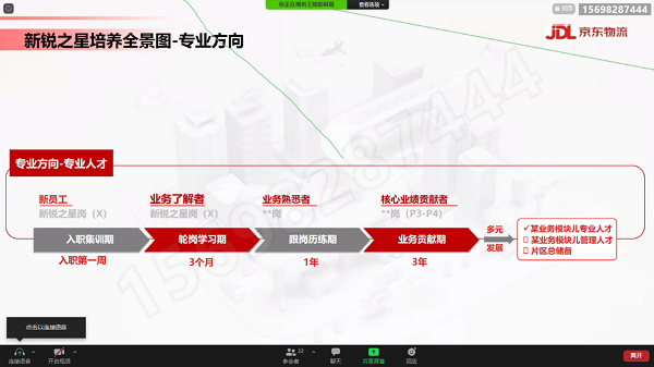 此次会议采用线上+线下的形式开展,严格落实疫情防控要求,以视频会议的方式同大家见面。会上借助京东物流发展的宣传片,向同学们介绍了京东集团的发展规模和京东物流的强劲实力,并着重向同学们详细解读了京东物流2022“新锐之星”项目。他指出,“新锐之星”项目是京东物流战略性人才招募及发展项目,旨在通过设置一线历练、轮岗学习、管理历练等体系化的3年培养,打造出一支具备京东精神,深耕物流业务,聚焦基层管理和专业成长的新锐之师,支持物流下沉战略落地与区域经营转型。同时,负责人王聪还就同学们关心的专业对口、所需人才素质、实习生的发展机会和上升空间、劳动的薪资待遇与福利等问题进行了详细的介绍。他还指出,公司也会开展相关技术培训会,请同学们不要有过多的顾虑。最后,在互相交流环节,认真解答了同学们的疑问,并真诚地希望各位同学顺利实现自己的梦想,不负青春美丽韶华。至此,此次招聘宣讲会在热烈的掌声中圆满结束。