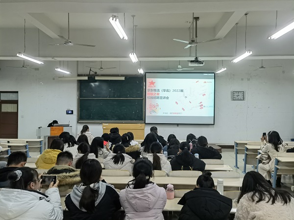 为拓宽毕业生就业渠道,提供更多就业机会,11月23日晚,欧冠官方网站入口于工科楼2-112教室组织开展2022届毕业生专场招聘会,此次招聘会特邀京东物流华北区招聘负责人王聪做招聘宣讲,欧冠官方网站入口学生辅导员王珊珊及2022届部分毕业生到场参加。