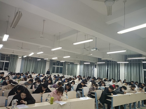 此次此次模拟考试经过稠密的前期准备,于19:00准时开始。此次考试严格按照全国大学英语四级考试流程进行,旨在为同学们提供一个实战模拟考场,提前感受英语四级考试的题型和模式,感受考试氛围,并且帮助同学们做好英语四级考试准备工作。考试过程中,同学们全神贯注地答题,严格按照考试时间去合理分配各个大题的时间,调配答题顺序。整场考试中,参加考试的考生都自觉遵守考试纪律,使得整个考场秩序有条不紊。
