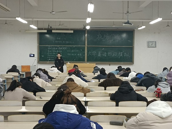 此次模拟考试,不仅让同学们熟悉了考试流程,并在试卷中及时发现自己的问题与不足,及时查漏补缺;同时,也对增强同学们的自信心,激发同学们备考四级的学习热情,促使同学们在四级考试中掌握更多的主动性具有重要意义。