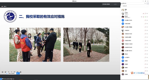 为进一步凝聚抗疫力量,增强欧冠官网学生抗疫必胜信心,调动起全院力量共抗疫情,坚决构筑校园疫情防控的坚固防线,3月20日晚,欧冠官网开展“同心抗疫 共克时艰”线上主题教育活动,本次会议由学生科科长靳雪银主持,全体辅导员、班主任以及694名学生同时参加。