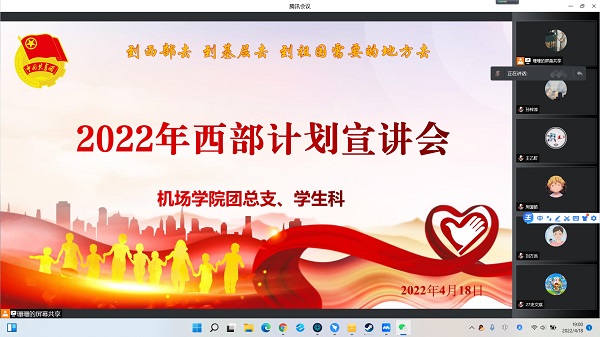 本次线上会议的召开,让同学们对西部计划有了更加深入的了解,也为大家提供了新的就业途径,对未来发展提供了新的途径。同时激励着同学们把小我融入大我,努力在祖国需要的地方书写别样青春。
