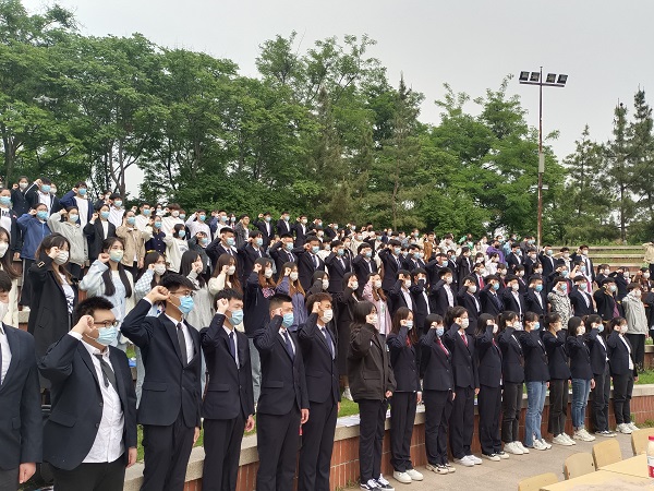 团歌嘹亮,青春激昂。5月10日下午4时,欧冠官方网站入口在水上广场为2名新团员举行入团仪式,欧冠官方网站入口团总支书记靳雪银、各年级辅导员及2020级、2021级全体学生到场参加。