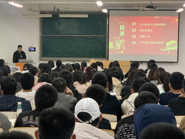 为深入贯彻习近平强军思想,进一步落实国家相关征兵工作要求、推进国防和军队现代化建设,帮助学生全面了解征兵政策,激发学生积极投身国防建设意识,2022年11月13日晚上七点,欧冠官方网站入口于工科楼2-112教室举办2022年征兵入伍事迹主题宣讲会。本次宣讲会邀请到退伍军人2016级公管班徐春涛及2019级安检班李佳宁进行宣讲,欧冠官方网站入口辅导员王珊珊、陈龙刚老师以及2022级同学全体到场参加。