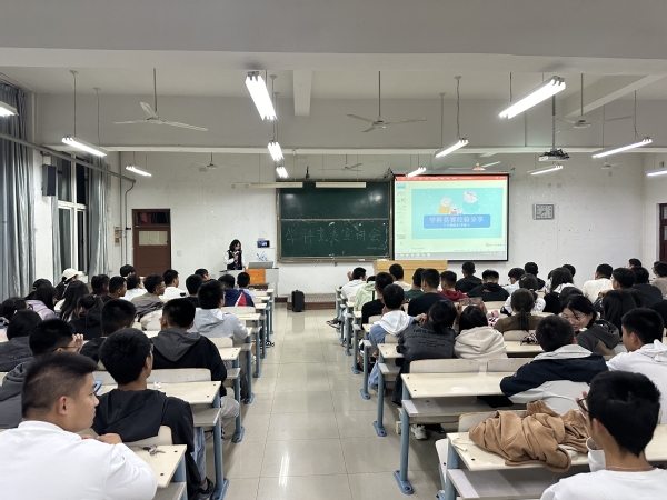 会议伊始,罗润三老师指出了本次宣讲会的目的和意义,他表示学科竞赛是培养同学们创新能力和科研能力的重要途径,同时也可以提升同学们的综合素质和科研能力。接着,杨梦真、李冰等7名大赛经验丰富的同学,依次上台发言,结合自身参赛经历和心路历程,就项目选题、成员组队、申报设计与项目实施等方面进行讲解与分享。随后,在问答环节中,同学们针对学科竞赛常见问题进行提问,学长们热情耐心地解答,分享宝贵参赛经验。最后,罗润三老师对本次分享会的内容进行细致的总结,号召同学们积极参与相关学科竞赛,在竞赛中提升自己的能力。