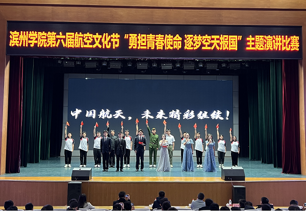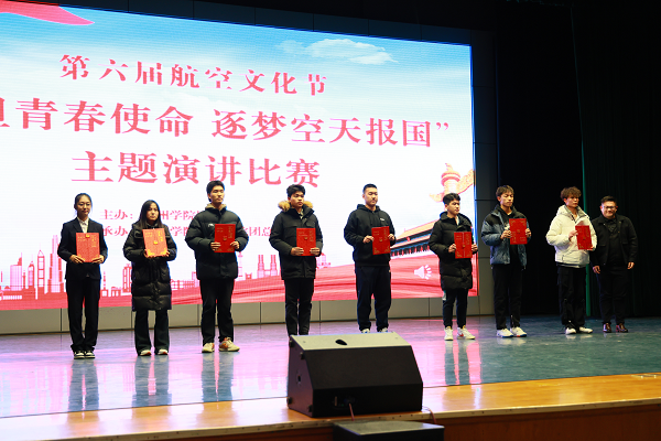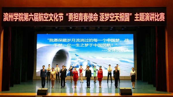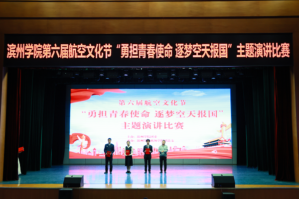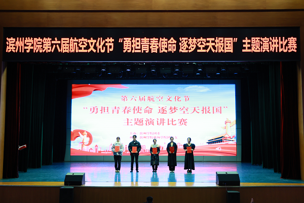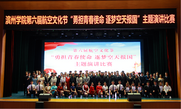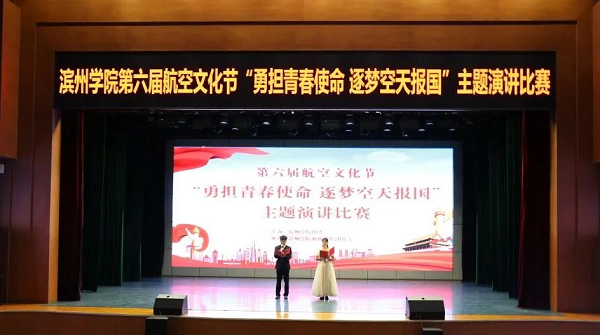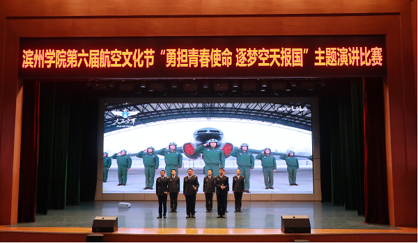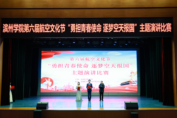 12月11日,由校团委主办、欧冠官方网站入口团总支承办的第六届航空文化节“勇担青春使命 逐梦空天报国”主题演讲比赛决赛在学苑会堂成功举办。本次比赛邀请中国文化信息协会文化产业专业委员会特聘会员程锐、滨州学院办公室副主任李文胜、学生工作处副处长李华、发展规划处副处长谢攀担任评委,校团委副书记张立强、欧冠官方网站入口党总支副书记刘法堂以及二级学院部分辅导员老师出席本次活动,共有十个学院代表队参赛。