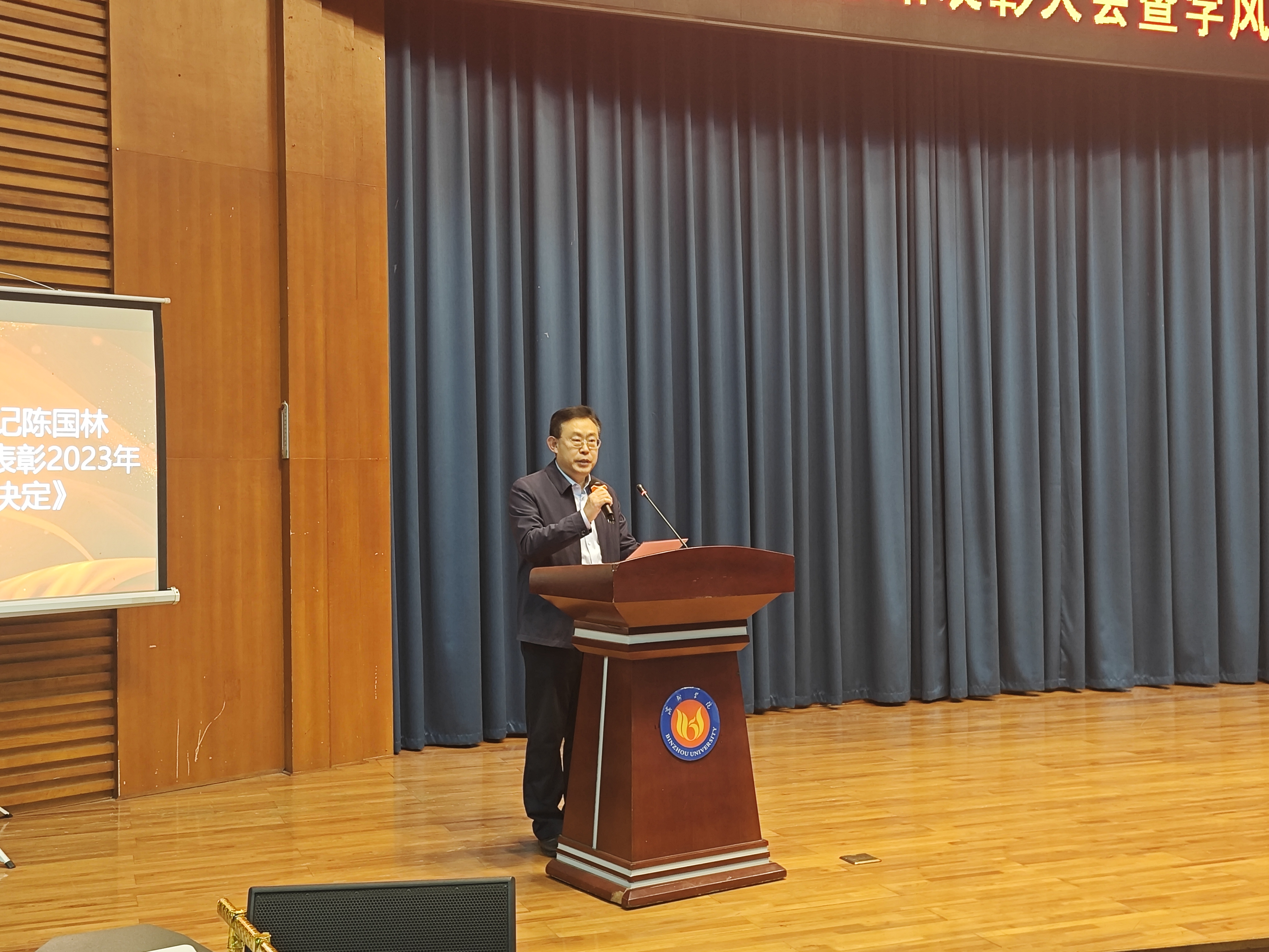 在热烈的掌声中,学校党委委员、纪委书记、监察专员李继峰,教务处处长、机电工程学院院长章健,科研处处长、黄河三角洲生态环境研究中心常务副主任、生物与环境工程学院副院长夏江宝分别为“欧冠官方网站入口 2023 年度工作先进典型”颁奖。学院党总支书记陈国林宣读《欧冠官方网站入口关于表彰2023年度工作先进典型的决定》,授予陈永军等 10 名同志“2023 年度工作先进典型”称号,希望全体教师以先进典型为榜样,积极工作、克服困难、勇于创新,为学院各项事业发展作出新的更大贡献。“优秀教研室主任”“教研标兵”刘伟波作为获奖教师代表发言,他用“机遇”“认同”“努力”三个关键词分享了自己的工作心得和获奖感受,号召全体教师爱岗敬业、坚持不懈、攻坚克难,把不可能的事情做成,把可能的事情做成无限可能。