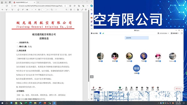蛟龙通用航空有限公司作为一家在行业内颇具影响力的企业,一直以来都注重人才的引进和培养。宣讲会上,公司负责人结合当前就业前景,为同学们介绍了公司的基本情况、主营业务、优势及核心竞争力以及招聘岗位和岗位要求,并向同学们分析了近年来的行业需求变化及公司当前发展方向,帮助同学们更加直观深入地了解就业形势和企业文化。随后,公司负责人重点介绍了招聘岗位的职责和要求、报名方式和流程。在线上答疑和会后咨询环节,工作人员对同学们关心的入职培训、岗位适任资格和具体要求、晋升机制等问题都一一给予详细解答,并针对个别同学的提问给予更适合其发展的建议。