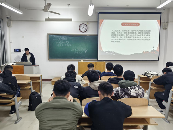 22物流本1团支部于2024年11月8日在8教507围绕“珍视生命安全——人民至上、生命至上”开展了主题团日活动。此次活动全面深入地学习贯彻了习近平总书记关于安全生产的重要指示精神。当代大学生应珍视生命安全,牢记安全重于泰山,为构建安全和谐的校园环境奠定坚实的基础,同时能够为国家的安全建设和社会的稳定发展做出努力,为全面建设社会主义现代化强国、全面推进中华民族伟大复兴贡献自己的力量,创造属于这一代人的辉煌。23交工本1团支部于2024年11月10日在实验室围绕“珍视生命安全——人民至上、生命至上”开展了主题团日活动。通过观看安全教育视频、分享安全知识案例、组织安全知识竞赛等形式,深入学习了习近平总书记关于安全生产的重要指示精神,引导团员青年增强安全意识,提高自我保护能力,确保每位团员青年都能够时刻保持警惕,做到防患于未然,共同为构建安全、和谐的校园环境贡献自己的力量。23物流本1团支部于2024年11月7日在9教502围绕“珍视生命安全——人民至上、生命至上”开展了主题团日活动。团支部书记通过视频及名词科普,向团支部成员展现了生命的可贵,带同学们深入学习了人民至上,生命至上的含义,认识了11.9全国消防日。 团支部成员踊跃回答消防知识安全问题,带动其他成员积极学习消防知识。大家深刻认识到了生命的重要性。24交工本1团支部于2024年11月7日在8教506围绕“珍视生命安全--人民至上、生命至上”开展了主题团日活动。团支部书记通过讲解真实案例和播放安全警示视频,向团员青年展示了不规范用电可能导致的严重后果。深入学习了习近平总书记关于安全生产的重要指示精神,引导团员青年增强安全意识,提高自我保护能力,共同为创建平安校园贡献力量。24交工本2团支部于2024年11月8日在8教507围绕“珍视生命安全--人民至上、生命至上”开展了主题团日活动。团支部书记通过讲解消防安全知识,结合生动案例,让团员们深刻认识到安全隐患无处不在。在安全演练环节,模拟火灾场景,团员们积极参与,学习正确使用灭火器和逃生技巧,现场气氛紧张而有序。许多团员表示今后会更加注重生活中的安全细节,并将所学知识传播给身边人。