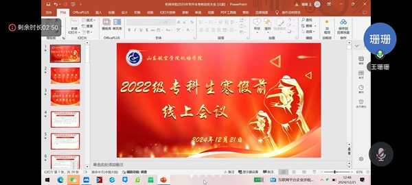 为了帮助学生深入了解专升本相关政策,明晰毕业流程与注意事项,欧冠官方网站入口于2024 年 12 月 21 日召开专升本政策宣讲及毕业前后工作提醒线上会议,此次会议由2022级辅导员王珊珊主讲,2022级安检专业全体学生参加。