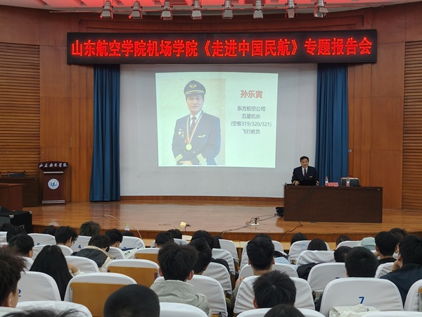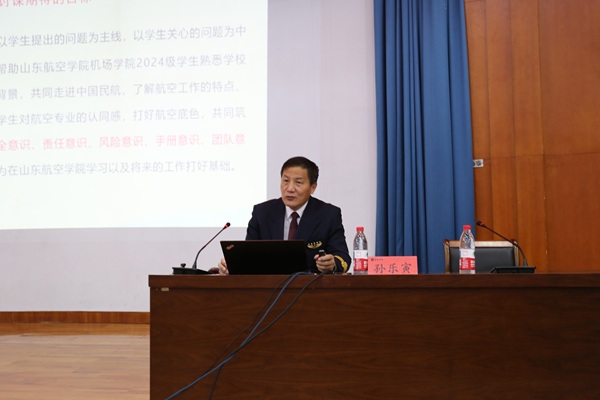 为加强学生思想引领,促进职业成长,引领广大青年学子坚定理想信念、弘扬报国之志、强化责任担当,4月8日下午,欧冠官方网站入口于明德报告厅开展《走进中国民航》专题报告会,有幸邀请到原民航山东监管局副局长、二级巡视员、民航安全飞行金质奖章获得者、东航五星机长、我校特聘教授孙乐寅做报告,全体2024级学生参加报告会,学院党委副书记主持报告会。