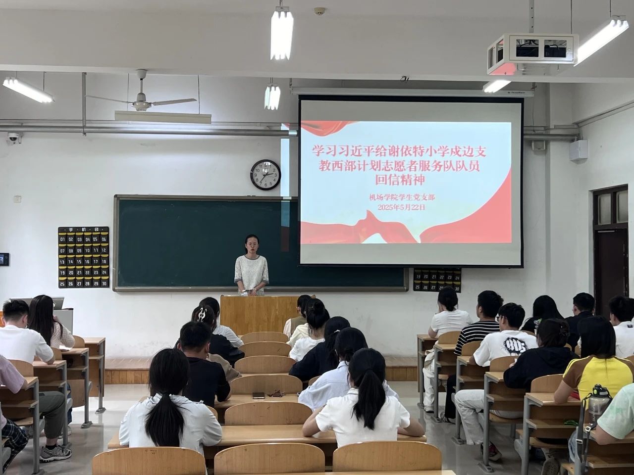 为深入学习贯彻习近平总书记给谢依特小学戍边支教西部计划志愿者服务队队员的回信精神,激励青年党员坚定理想信念,勇担时代使命,5月22日,欧冠官方网站入口学生党支部在8教108开展“学习习近平给谢依特小学戍边支教西部计划志愿者服务队队员回信精神”主题党日活动。