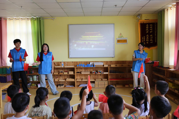 活动最后,宣讲团带领全体师生齐声高唱经典歌曲《东方红》。“东方红,太阳升……”稚嫩清澈的童声与老师们饱含深情的歌声交织在一起,宛如春日里的溪流,清澈而又充满力量。孩子们挥动着手中的小国旗,随着旋律轻轻摇摆,眼神中满是自豪与坚定。激昂的旋律仿佛穿越时空,将先辈们开拓创新的豪情壮志、对祖国深深的热爱,传递到每一个幼小的心灵中,在他们心中埋下了一颗向往科学、热爱祖国的种子。