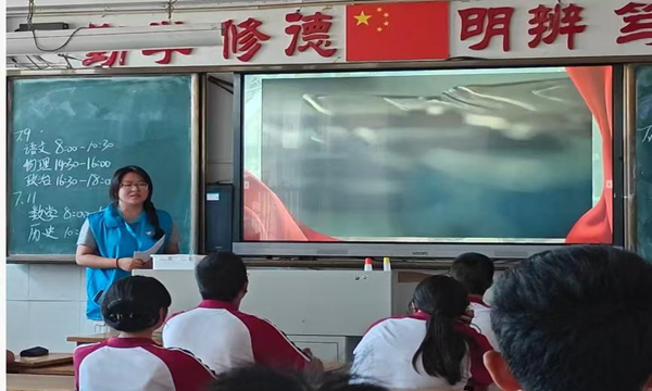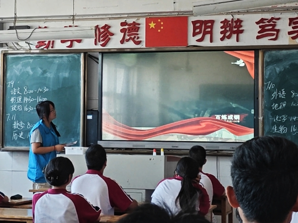 7月14日,山东航空学院欧冠官方网站入口“星” 火 “核” 力宣讲团前往日照市岚山区第一中学高一(15)班,开展“两弹一星燃青春,少年自有凌云志——郭永怀事迹”主题宣讲活动,让“两弹一星”精神从课本上的文字符号,化作了可触可感的信仰力量,在少年心中播下家国担当与科学精神的种子。