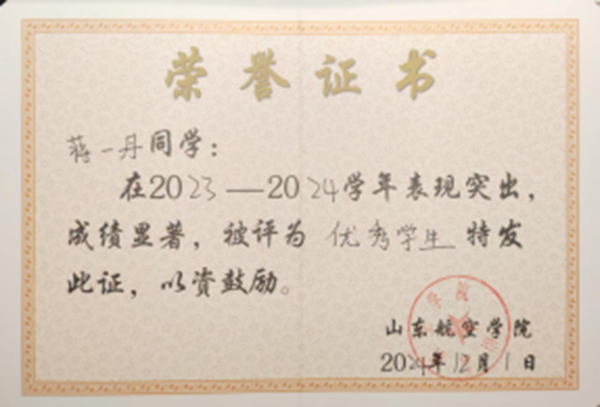 自2023年进入山东航空学院以来,她始终将学业放在首位,钻研学业深度,同时以实践活动为翼,拓展实践的广度。她努力使自己成为德智体美劳全面发展的复合型人才与社会主义合格接班人,在思想、学习、工作和生活都取得了突出的成绩。