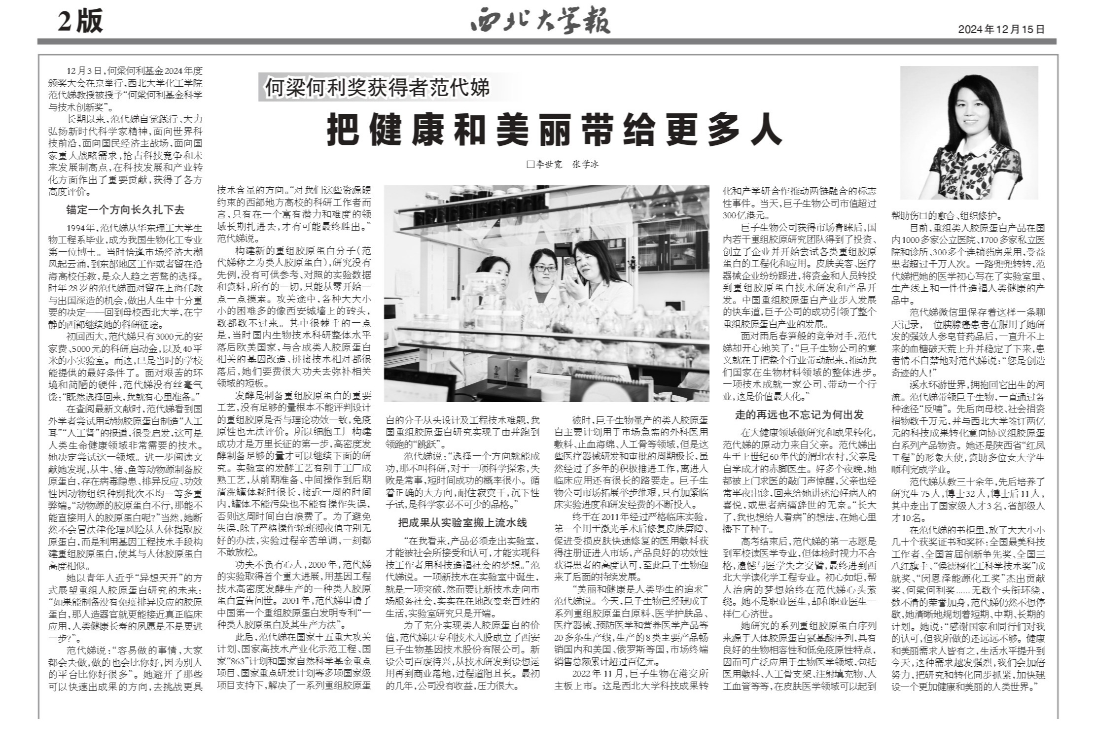 12月3日,何梁何利基金2024年度颁奖大会在京举行,bat365正版唯一官网化工学院范代娣教授被授予“何梁何利基金科学与技术创新奖”。长期以来,范代娣自觉践行、大力弘扬新时代科学家精神,面向世界科技前沿,面向国民经济主战场,面向国家重大战略需求,抢占科技竞争和未来发展制高点,在科技发展和产业转化方面作出了重要贡献,获得了各方高度评价。锚定一个方向长久扎下去1994年,范代娣从华东理工大学生物工程系毕业,成为我国生物化工...