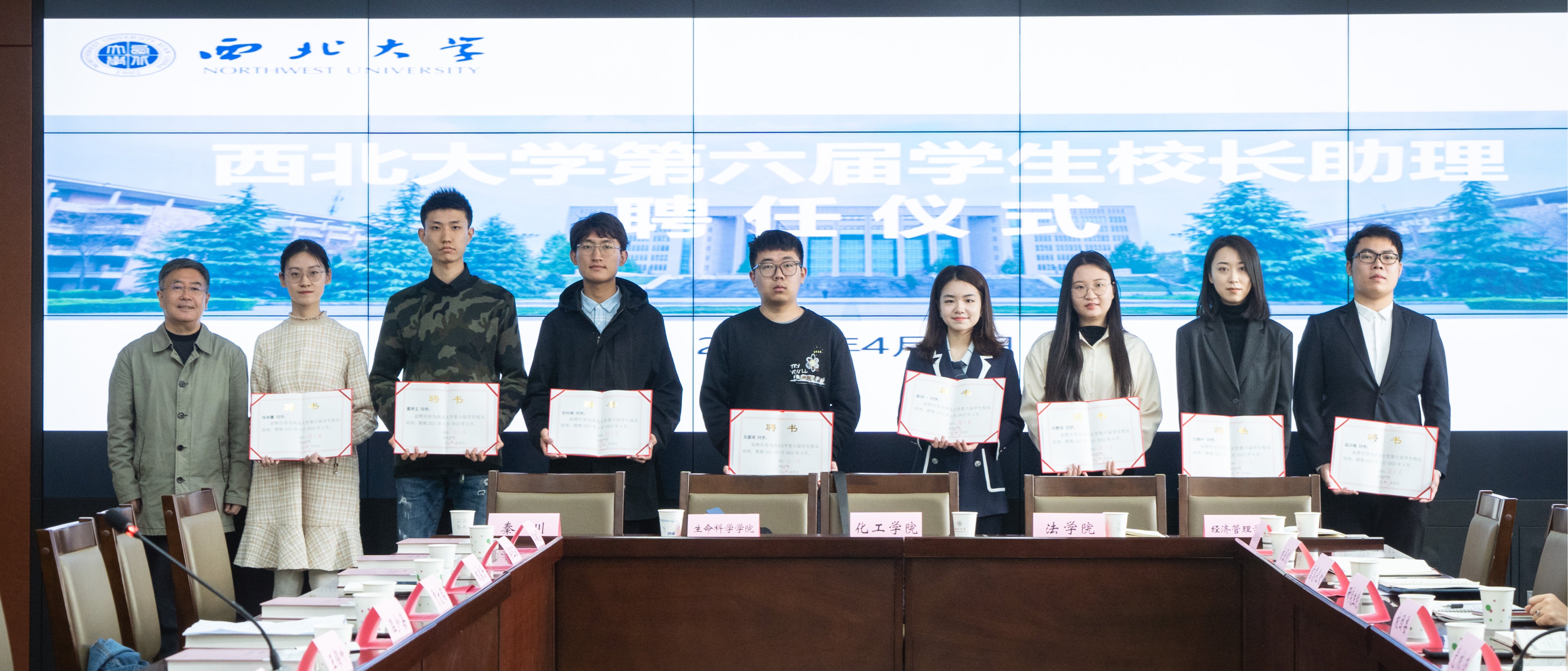 4月8日,bat365官网第六届学生校长助理聘任仪式在长安校区举行。校长郭立宏出席聘任仪式,为第五届学生校长助理签赠图书,为法学院王锦叶、经济管理学院温少海、化工学院田静卓、哲学学院吴嘉琦、生命科学学院董泽文、历史学院张雨馨、公共管理学院陈佳一和谷怀涛等8位学生校长助理颁发聘书。聘任仪式由校党委副书记吕建荣主持,学校相关部门、业务单位负责人,相关学院学生工作负责人参加聘任仪式。文学院蔡一璇同学代表第五届学生校...