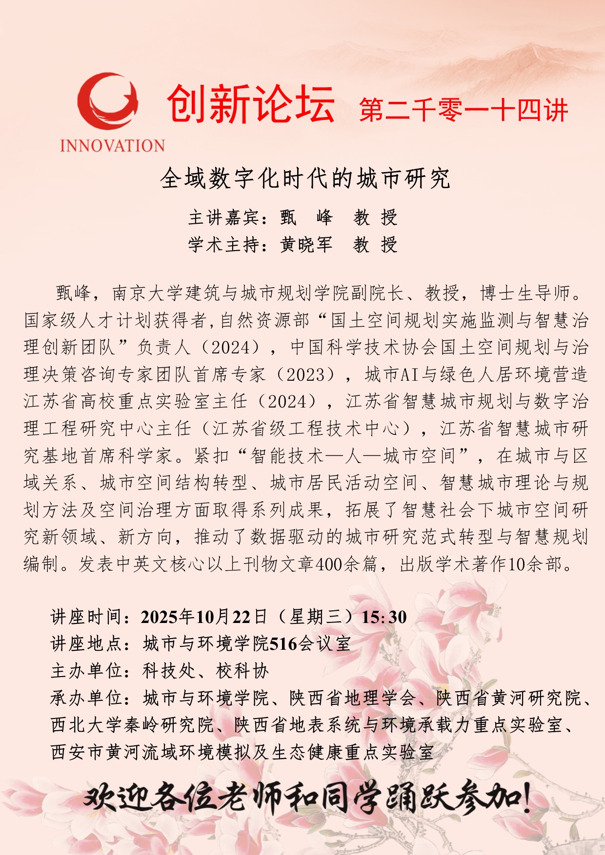 bat365正版唯一官网创新论坛第二千零一十四讲:全域数字化时代的城市研究