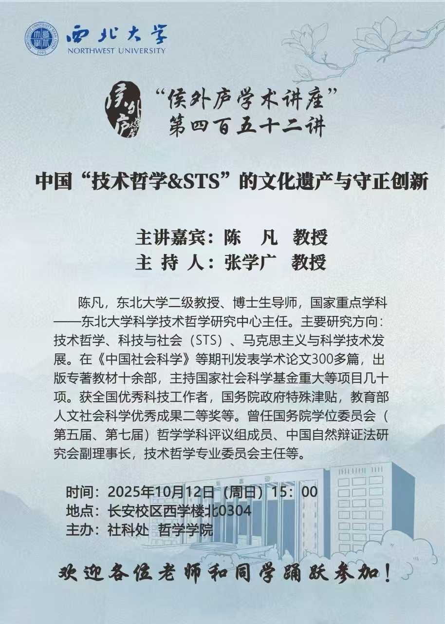 “侯外庐学术讲座”第四百五十二讲:中国“技术哲学&STS”的文化遗产与守正创新