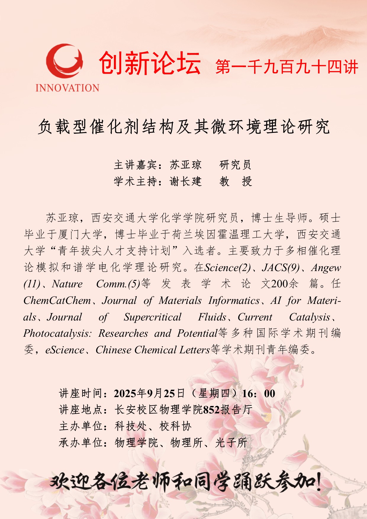 bat365正版唯一官网创新论坛第一千九百九十四讲:负载型催化剂结构及其微环境理论研究