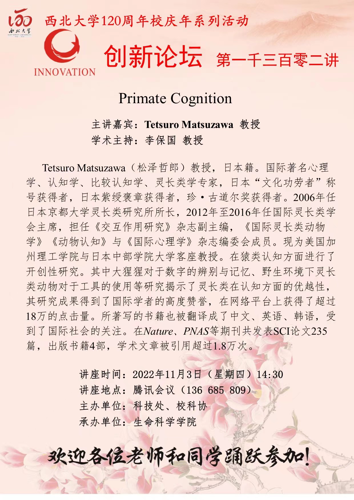 作者:Tetsuro Matsuzawa 教授发布时间:2022-10-26阅读:
