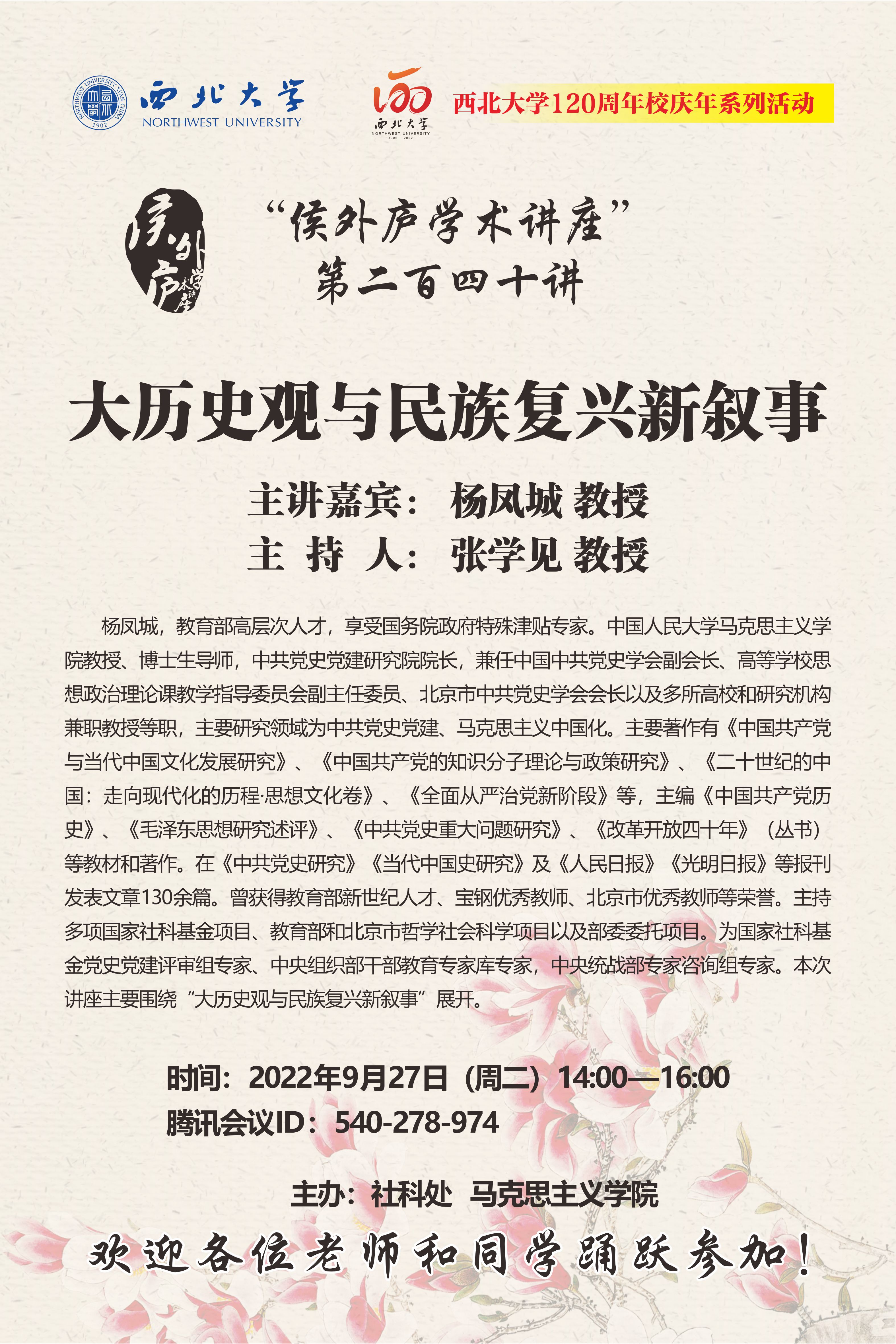 上一篇:侯外庐学术讲座第二百四十一讲暨120周年校庆年系列活动:中国特色区域国别学的建设目标与推进路径
