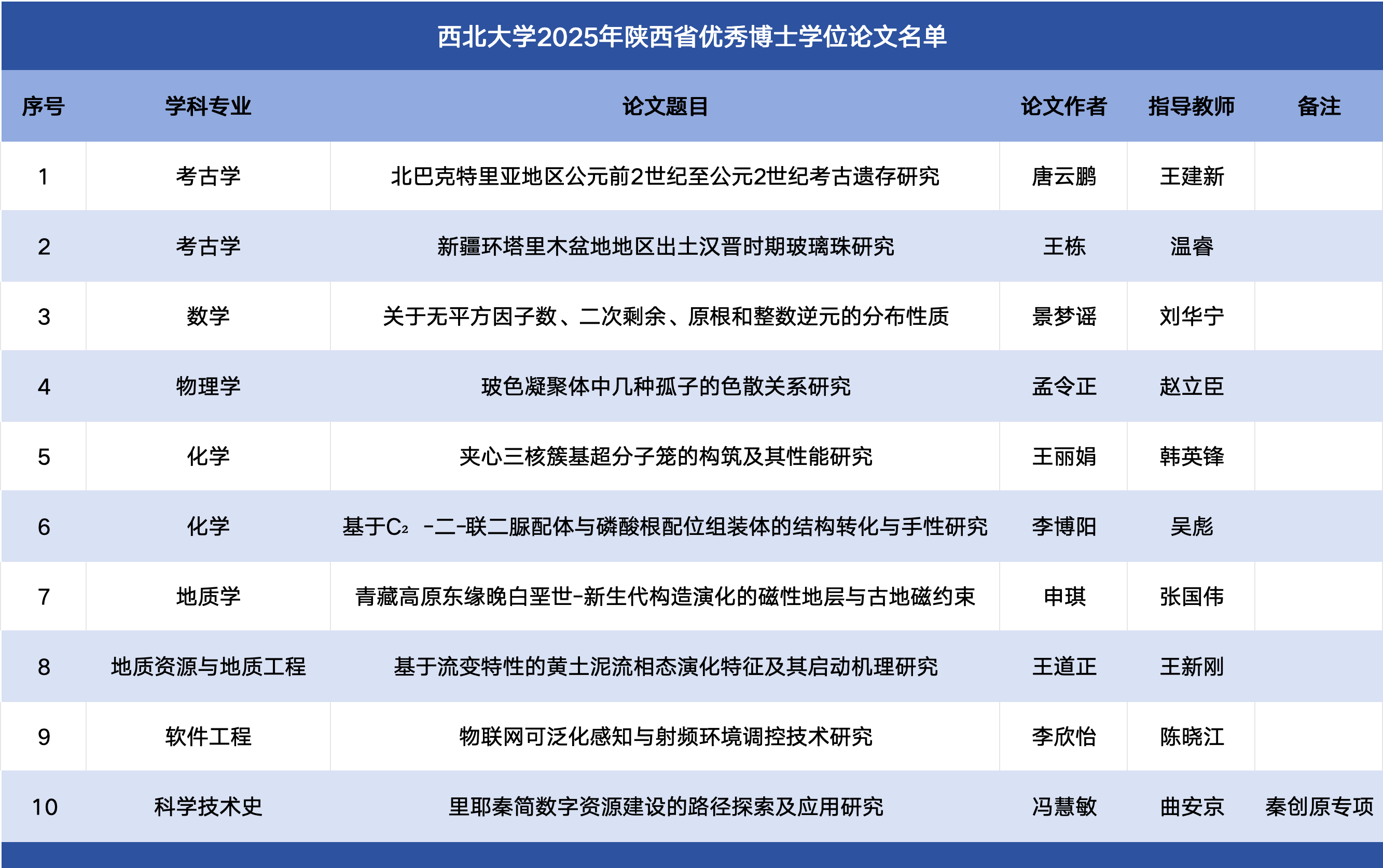 近日,2025年陕西省优秀博士学位论文评选结果揭晓,bat365官网学共有10篇博士学位论文入选,其中荣获“秦创原专项”1篇。本年度入选数量创历年新高,位列省属高校第一、并列全省高校第四。