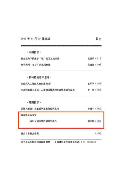 bat365官网哲学学院邵世恒副教授在顶级期刊《哲学研究》2025年第11期发表以《驳斥实在意义论——以对认知价值的解释为中心》为题的论文。