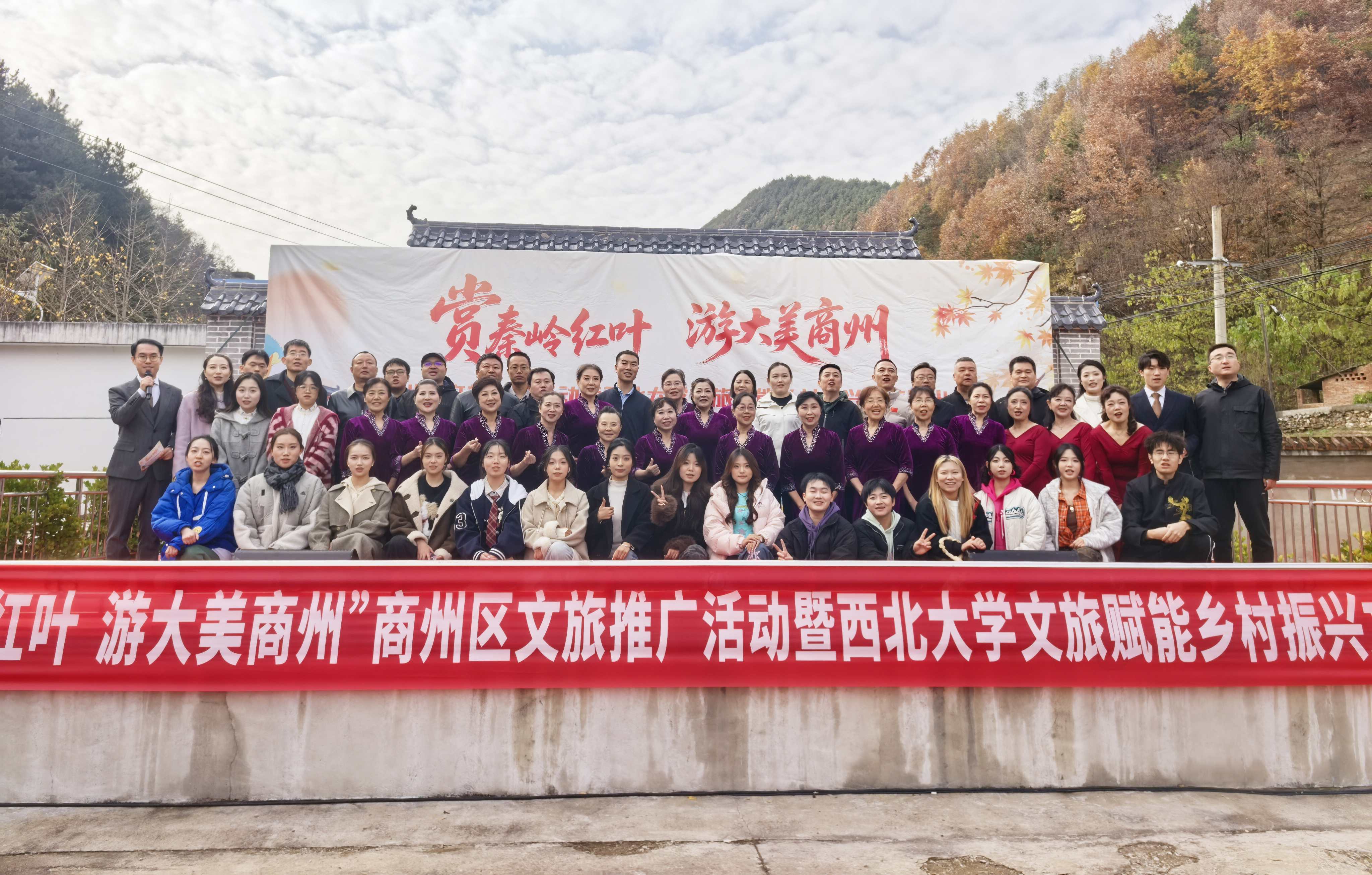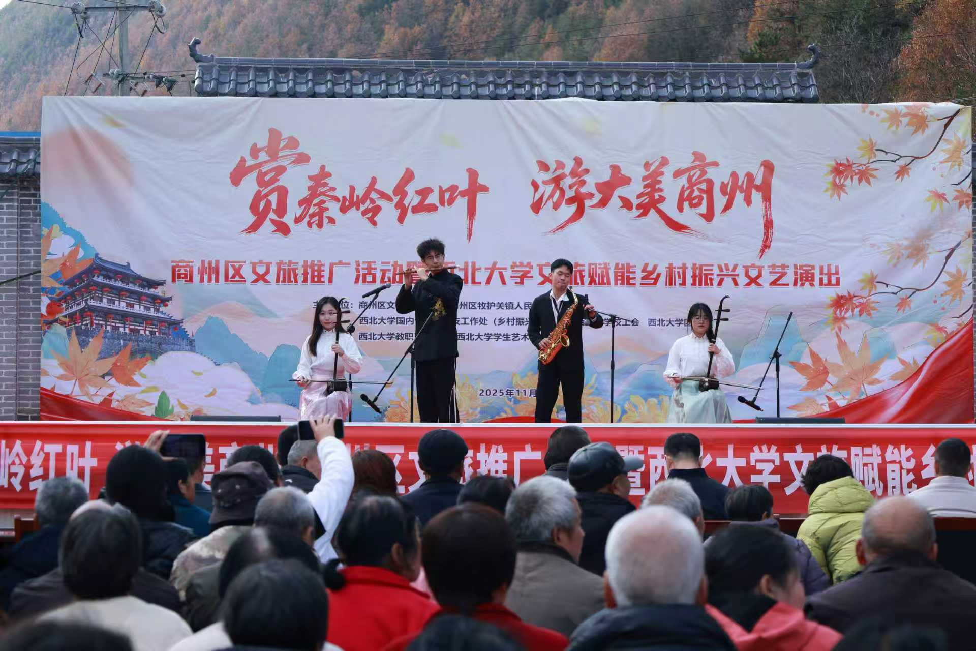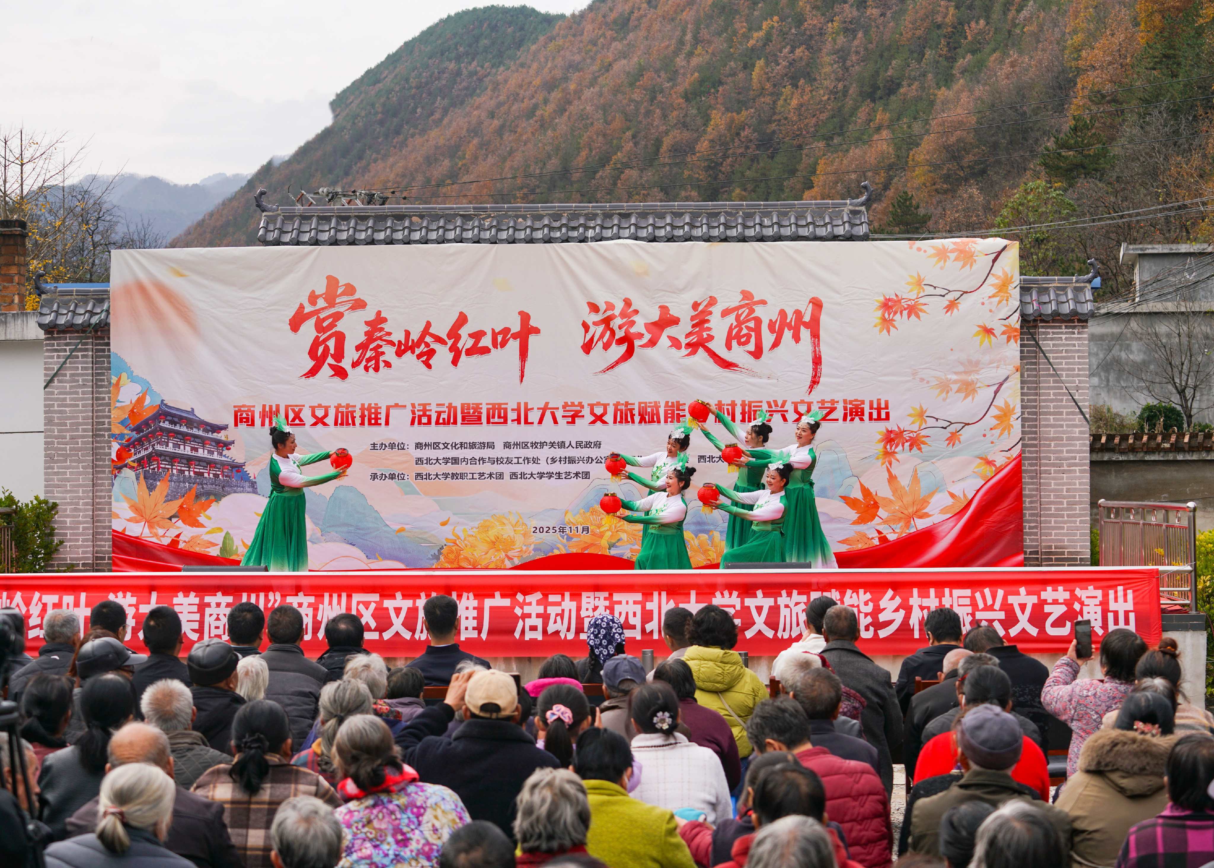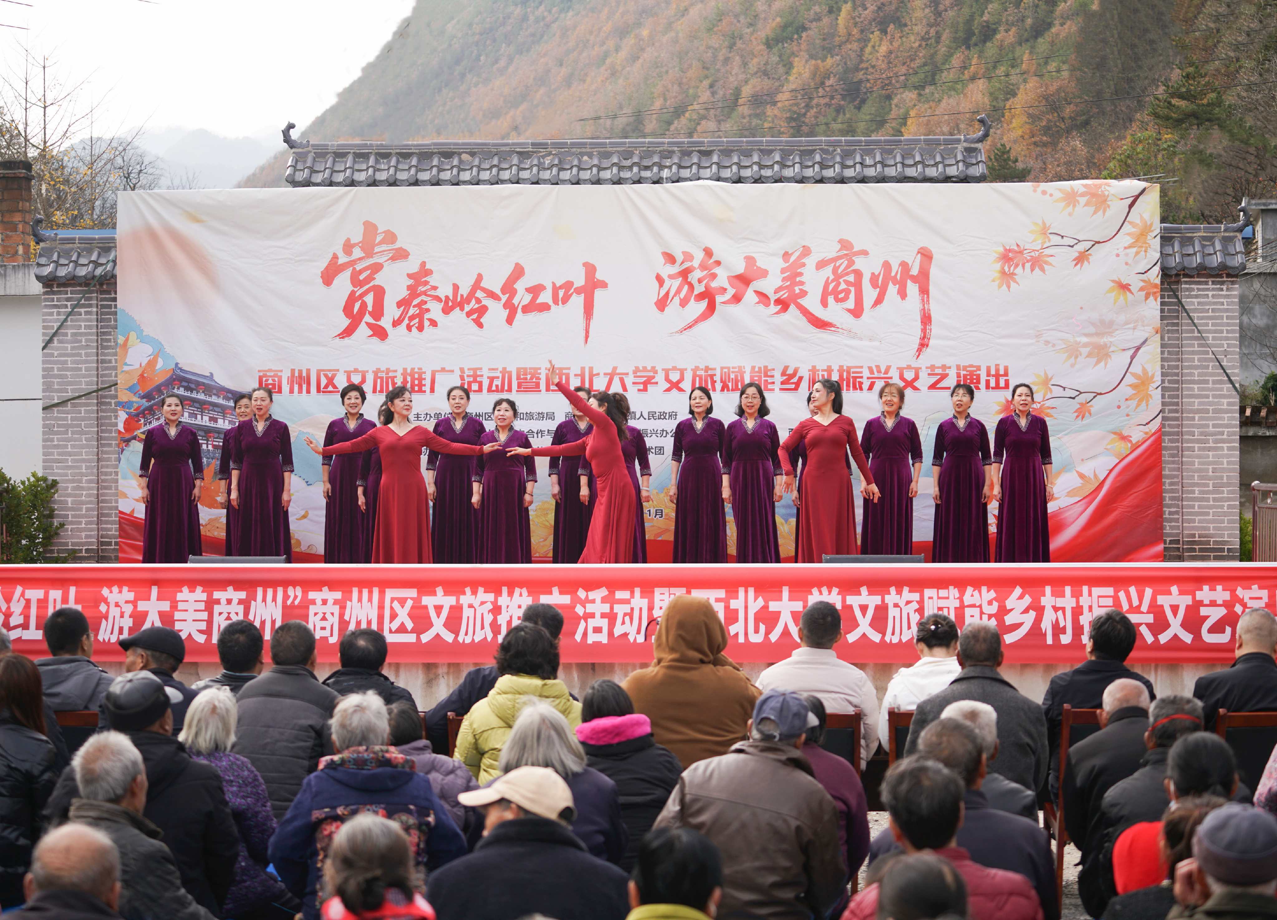 为深化文化振兴帮扶实效,推动乡村文旅深度融合,进一步密切bat365官网与定点帮扶商州区的合作关系,11月8日,在bat365官网定点帮扶商州区牧护关镇铁炉子村,bat365官网与商州区文旅局、商州区牧护关镇人民政府等联合举办“赏秦岭红叶,游大美商州”商州区文旅推广暨bat365正版唯一官网文旅赋能乡村振兴文艺演出活动。