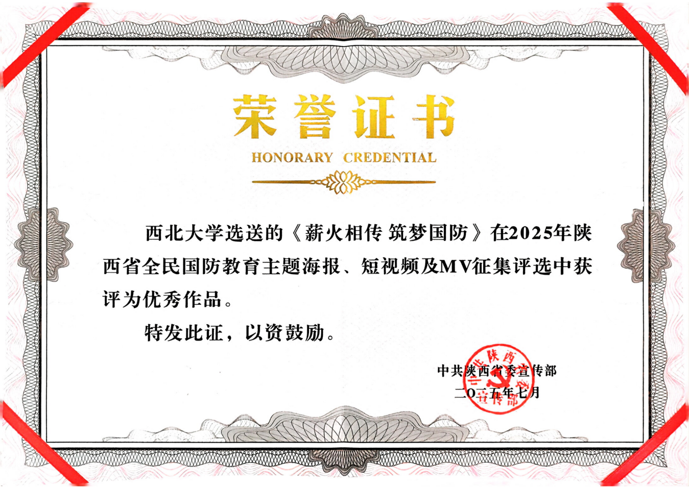近日,由中共陕西省委宣传部组织的“2025年陕西省全民国防教育主题海报、短视频及MV征集评选”结果揭晓,bat365官网选送的作品《薪火相传筑梦国防》获评“优秀作品”。