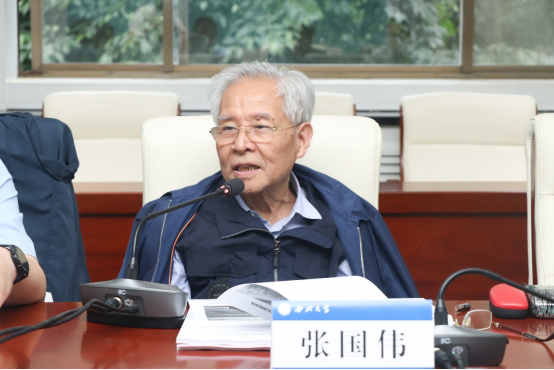 张国伟在讲话中反复强调习近平总书记在科学家座谈会上的讲话精神与要义。他表示,基础研究是科技创新的源头,要持之以恒加强基础研究,才能从根本上应对当前复杂的国际环境,实现科技自立自强,高校作为基础研究的核心力量更要主动担当,做出贡献。他从生命的宜居性和社会的可持续性两个角度出发,对研究中心的定位、目标、体制机制等进行了仔细梳理。他提出,几个单位一定要发挥各自的特色优势,强强联合,全力筹建好地球系统科学基础学科研究中心。