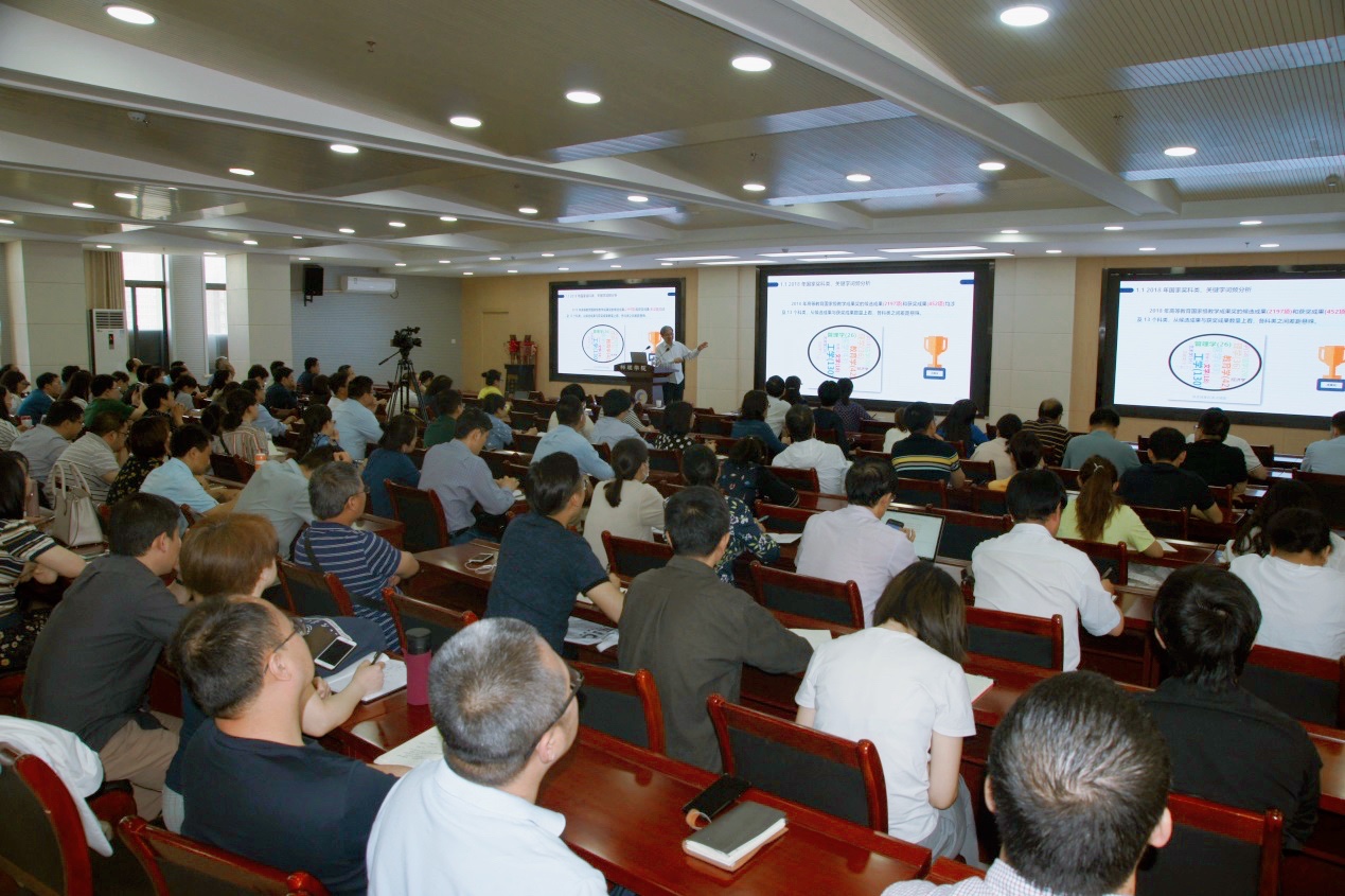 国家级教学名师、国家级教学成果奖一等奖获得者冯博琴教授作了题为“教学成果凝炼与成果奖申报”的报告。他围绕教学成果奖申报工作,简要分析了2018年国家教学成果奖获奖的基本情况,系统讲解了教学成果难点如何突破、亮点如何展示、申报书撰写以及支撑材料如何挖掘等关键环节,并结合成果奖申报经历进行了案例剖析。他认为,教学成果是基于教学的科学研究,必须有科学的精神、用科研的方法总结凝练,并通过启发式的问题帮助与会人员进行深入思考。