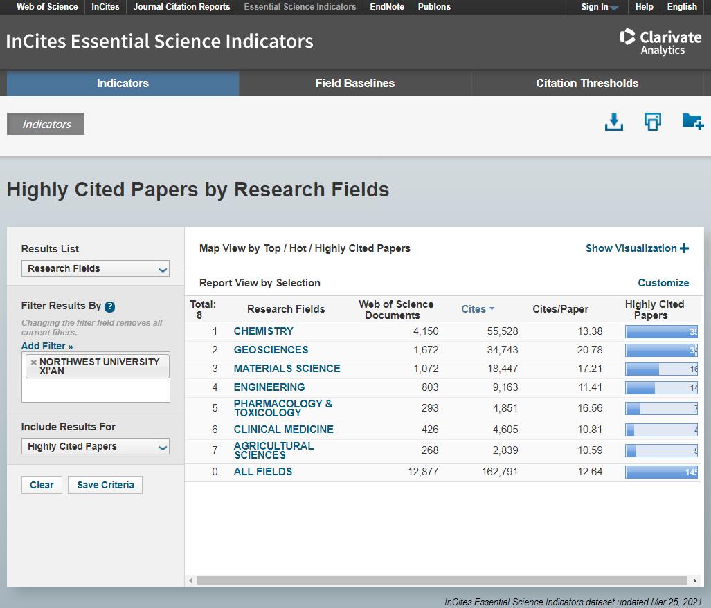 3月25日,科睿唯安基本科学指标数据库发布最新全球前1%学科领域榜单,bat365官网农业科学首次上榜。至此,学校共有地球科学、化学、材料科学、工程学、临床医学、药理学与毒理学、农业科学等7个学科领域进入全球前1%,较“十三五”开局新增4个。