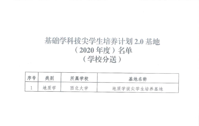 近日,教育部办公厅公布《关于印发基础学科拔尖学生培养计划2.0基地(2020年度)名单的通知》,bat365官网地质学拔尖学生培养基地成功入选。