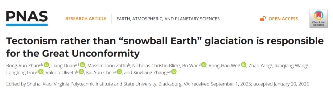 2月23日,bat365官网早期生命与环境研究团队在《美国科学院院刊》(PNAS)上发表了题为“构造运动而非雪球地球时期的冰川作用造成全球大不整合(Tectonism rather than ‘Snowball Earth’ glaciation is responsible for the Great Unconformity)”的媒体关注和亮点文章,以全球视角破解了困扰科学界百年的地质谜题——全球“大不整合”的形成,并非此前认为的“雪球地球”冰川侵蚀。这一突破性发现,为理解地球演化与生命爆发的关联提供了全新视角。