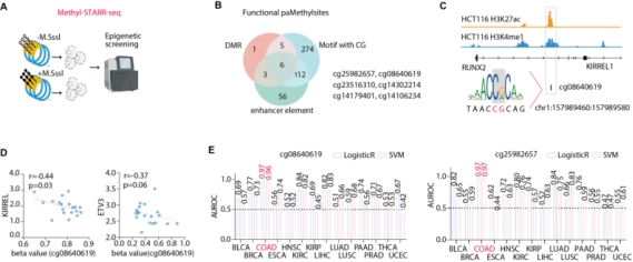 结直肠癌(CRC)作为常见的恶性肿瘤之一,其发生发展涉及复杂的基因组与表观遗传变异。以往研究多聚焦于编码基因突变(如APC、KRAS等)的驱动作用,然而超过90%的疾病相关变异位于非编码区域,提示调控元件的功能失调在肿瘤演进中扮演关键角色。增强子作为基因表达的重要调控元件,其活性受到单核苷酸多态性(SNP)和DNA甲基化等表观遗传修饰的精密调控,在肿瘤发生、转移及异质性形成中具有重要作用。尽管功能基因组学方法如MPRA等为解析非编码变异提供了工具,但由于技术限制,对结直肠癌中非编码变异及差异甲基化区域(DMR)的系统性功能注释仍然缺乏,尤其在转移性肿瘤中的调控动态尚不明确。