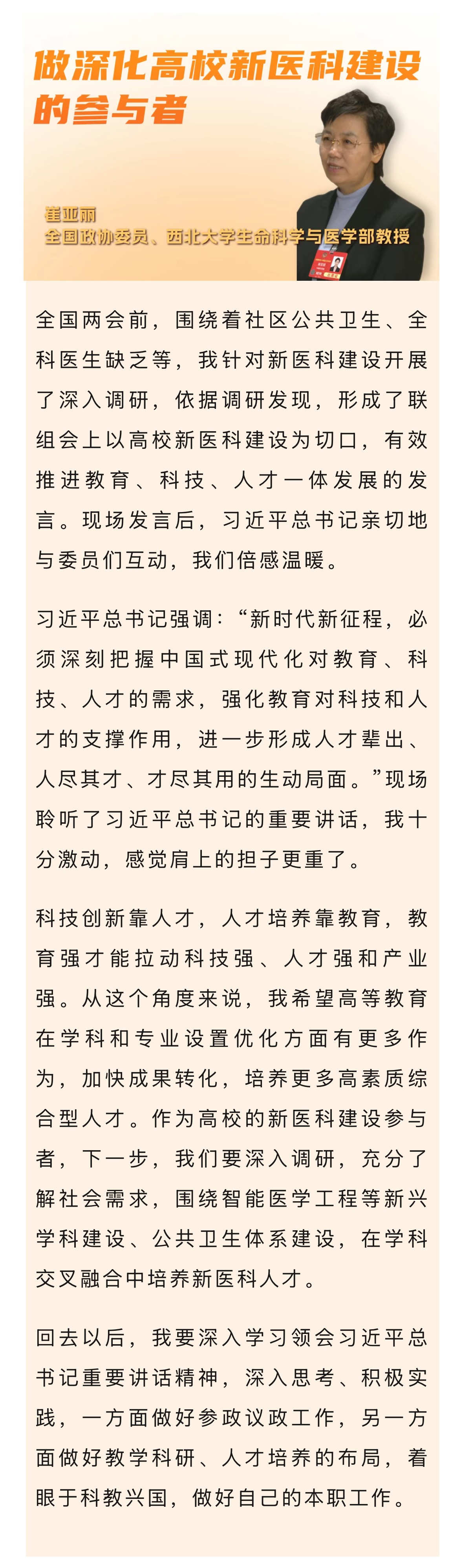 会后,联组会上发言的6位委员在接受采访时一致表示,将牢记习近平总书记嘱托,立足自身岗位,开拓创新,不懈奋斗,积极投身教育科技人才体制机制一体改革和发展实践,为提升国家创新体系整体效能作出新的贡献。