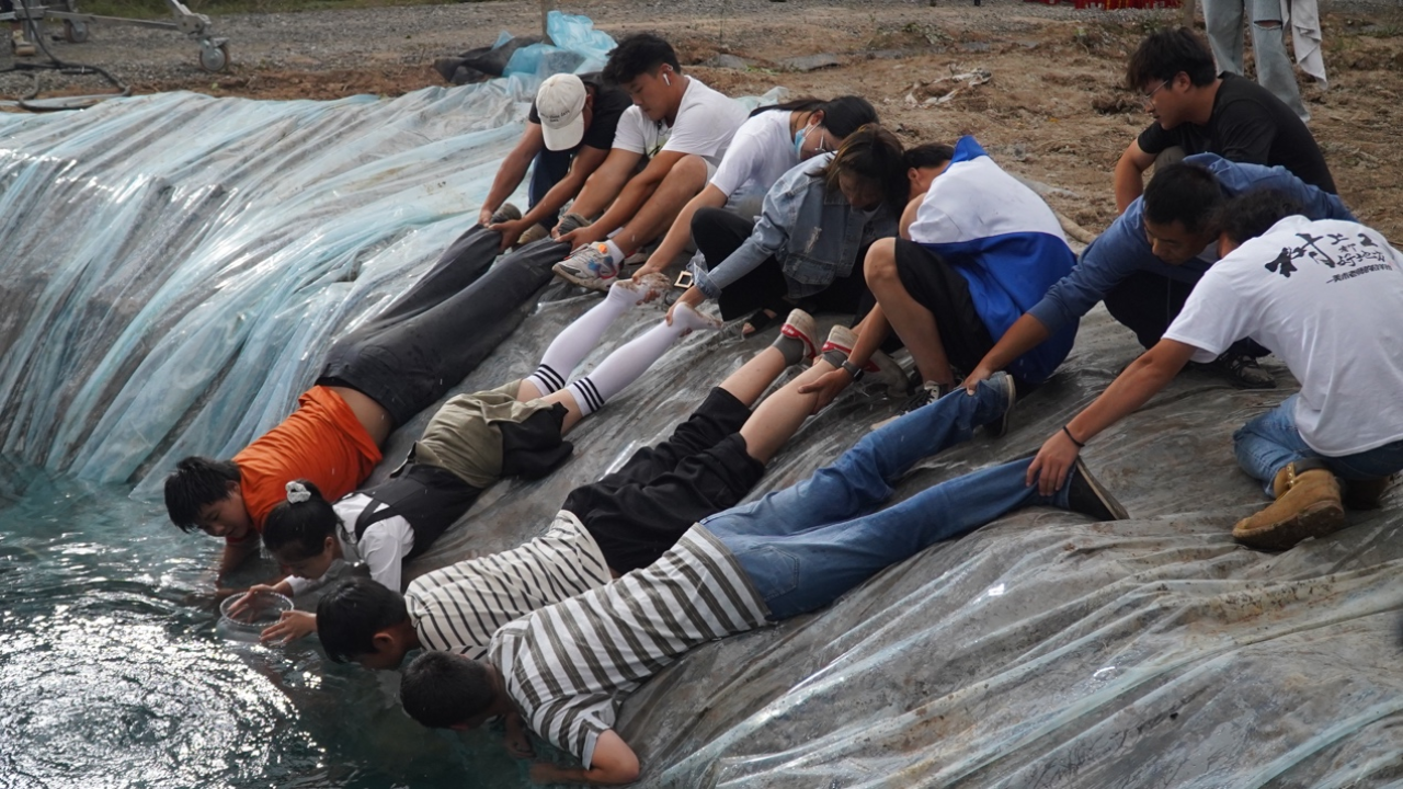 拍《树上有个好地方2》时,因经费不足,自制水下摄影棚。(受访者供图)