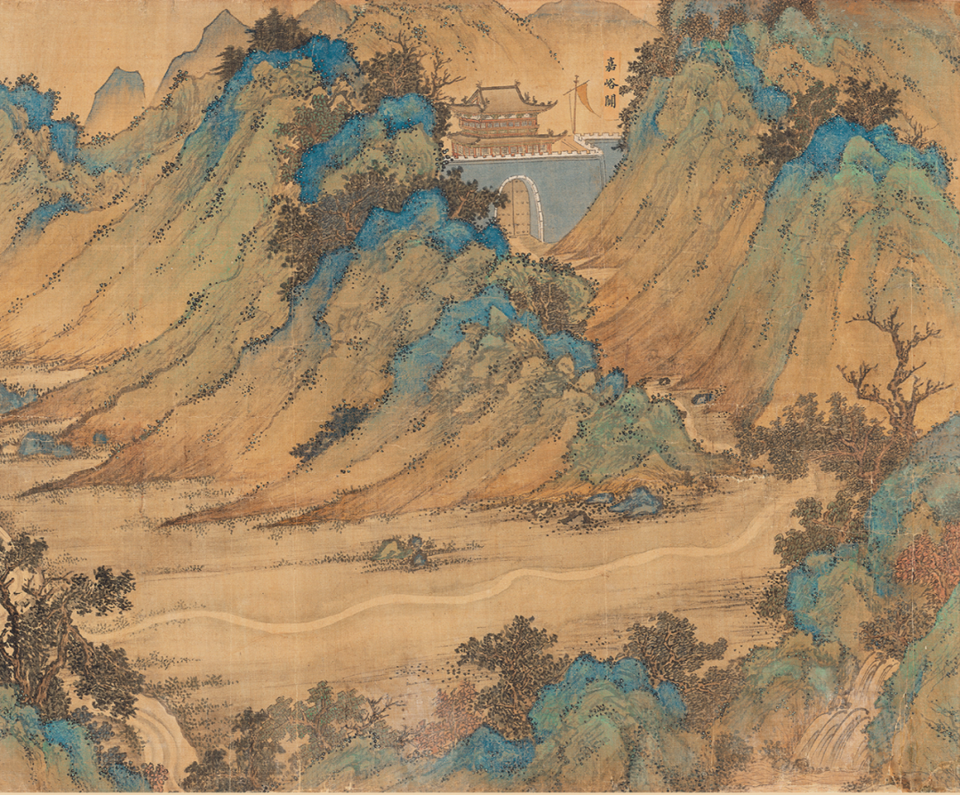 北京故宫藏“丝路山水地图”卷首嘉峪关段。地图的东起点。嘉峪关是明长城最西端的关口,是连接西域与中原的重要枢纽,陆上丝绸之路的必经之地。