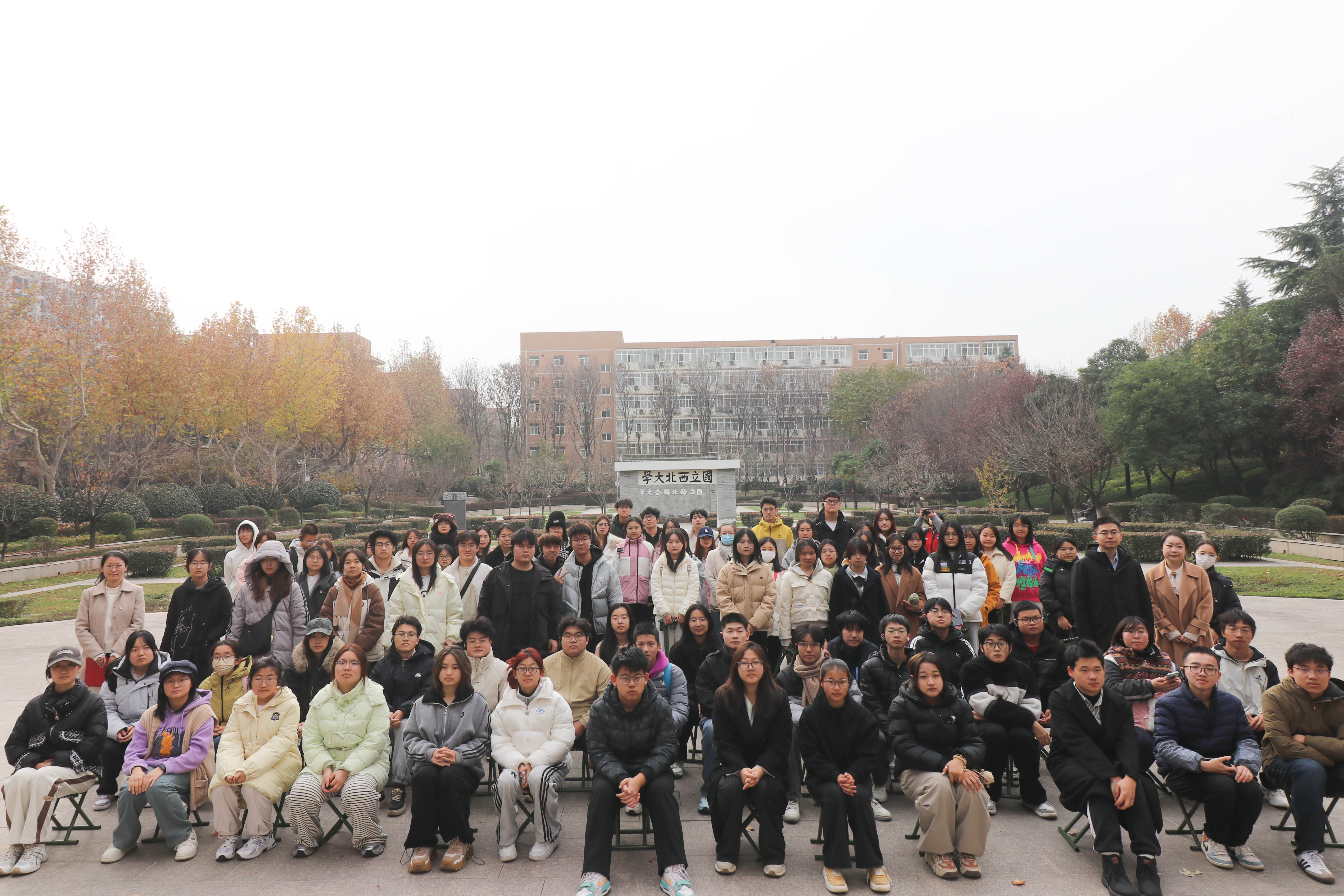 课程从“xida星”和“母校铭”百廿校庆文化景观开始。同学们在老师们的带领下,从中心广场穿行而过,罗健夫先生的赤诚、齐越先生的坚守在雕塑旁愈发清晰;“国立西北联合大学校歌纪念石”前,铿锵有力的歌词让同学们深切感受烽火中的办学初心;“学堂厅”的屋檐下,西大的建校脉络在讲解中逐渐明晰。沿校园环道,王戍堂先生的学术坚守、熊庆来先生的育人情怀、高鸿先生的科研热忱、何炼成先生的经世担当、傅角今先生的地理深耕、黄文弼先生的考古初心、侯伯宇先生的高尚无私、李仪祉先生的水利宏愿、张凤翙先生的教育星火——一座座人物雕塑前,英模事迹通过师长与学长学姐的生动讲述变得可感可及。在郭峰事迹展厅内,珍贵的史料与感人的故事,更让同学们对“奉献”二字有了真切体悟。行程的终点,所有人聚集在“国立西北联合大学”影壁前,共同解锁“公诚勤朴”校训背后的育人故事。