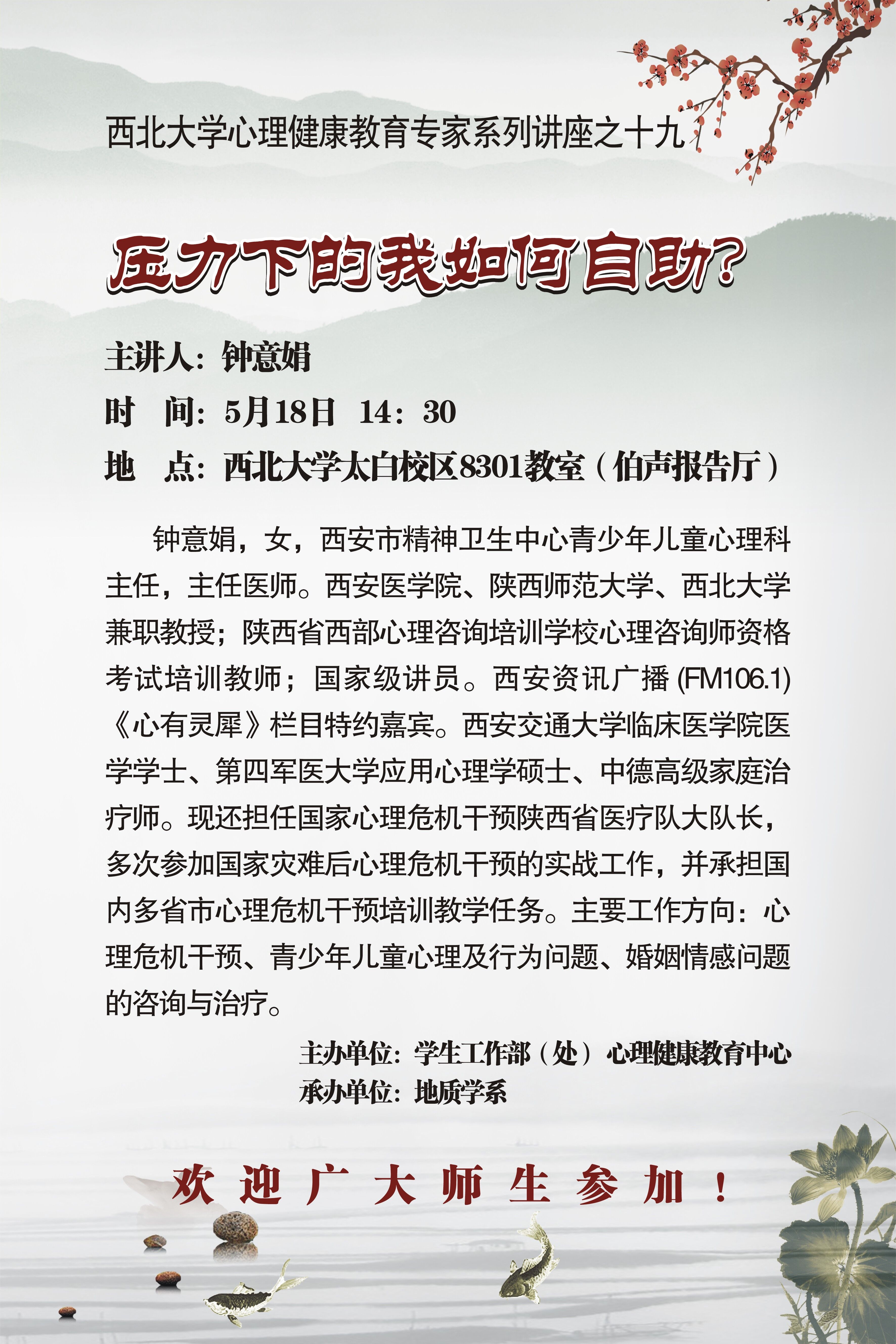 bat365正版唯一官网心理健康教育专家系列讲座之十九|钟意娟:压力下的我如何自助?