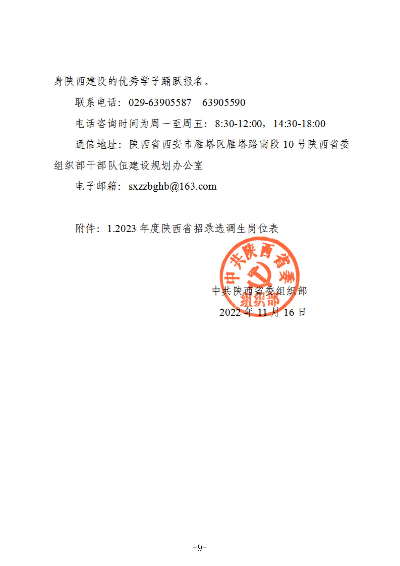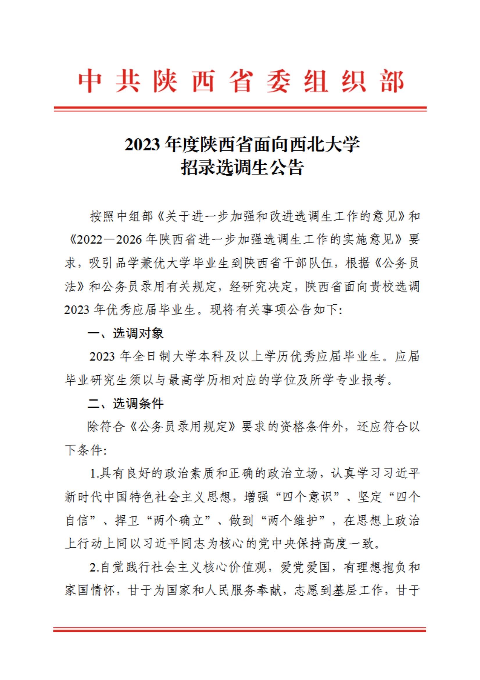2023年度陕西省面向bat365正版唯一官网招录选调生公告