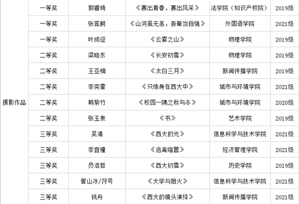 摄影作品获奖名单